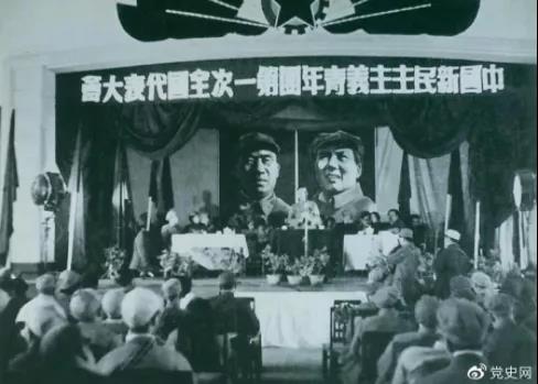 ▲1949年4月11日,中国新民主主义青年团第一次全国代表大会召开。图为大会会场。