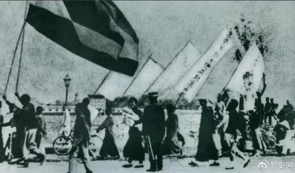 ▲1919年5月4日,北京爆发学生反帝爱国运动。这是北京大学学生的示威游行队伍。