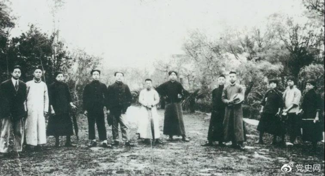 ▲1920年5月8日,新民学会部分会员在上海半淞园合影。左七为毛泽东。