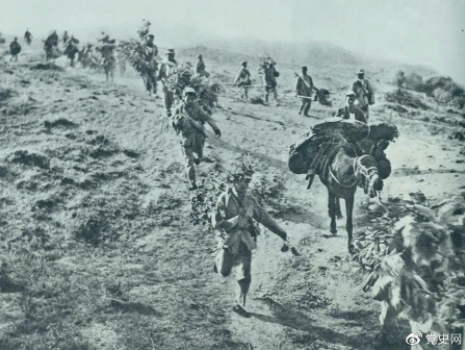▲图为1947年5月在孟良崮战役中,华东野战军向孟良崮挺进。