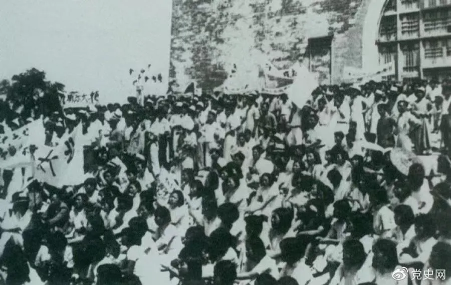 ▲1936年6月13日,北平学生与市民在鼓楼前举行声势浩大的抗日集会。