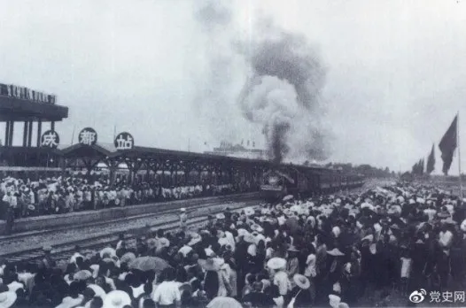 ▲新中国成立后,在短短的两年内就建成了成渝铁路。图为1952年7月1日由成都开出的第一列火车。