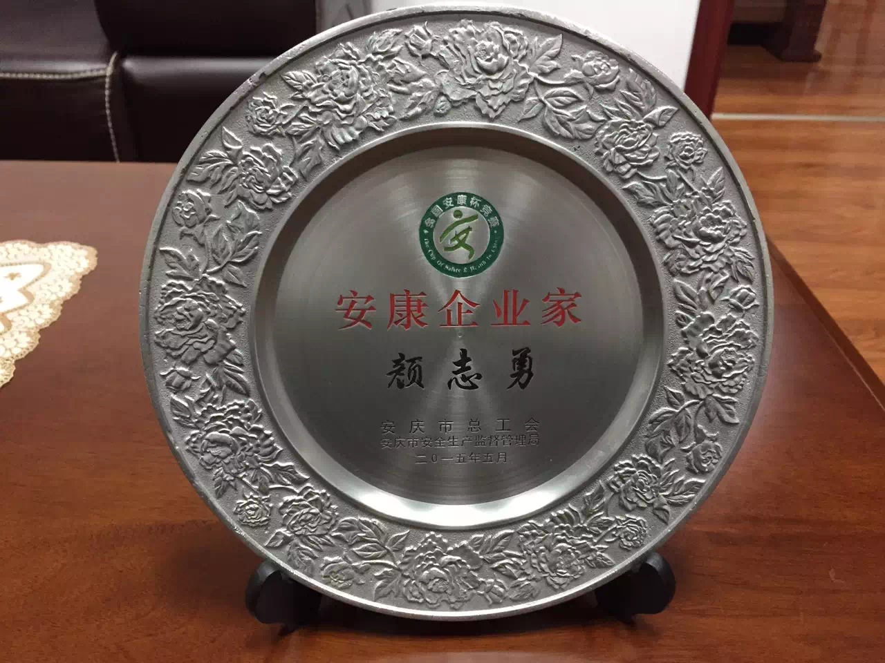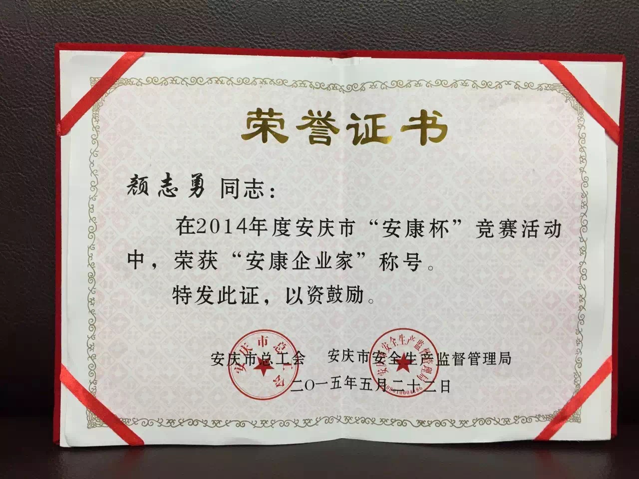 年度安庆市“安康杯”竞赛活动中,公司董事长颜志勇荣获“安康企业家”称号。