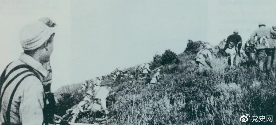 ▲重庆谈判期间,为了反击国民党军队的进攻,刘伯承、邓小平于1945年9月发起上党战役。图为晋冀鲁豫军区部队正向老爷岭冲锋。