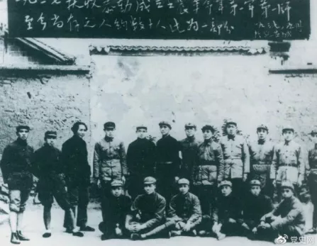 ▲1927年9月9日,以毛泽东为书记的中共湖南省委前敌委员会,领导工农革命军第一师发动湘赣边界秋收起义。图为毛泽东在延安和当年参加秋收起义的部分同志合影。