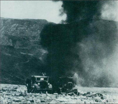 1937年10月18日,八路军第一二〇师一部在山西雁门关以南伏击日军,毙伤敌300余人,击毁敌汽车20余辆。图为燃烧着的日军汽车。
