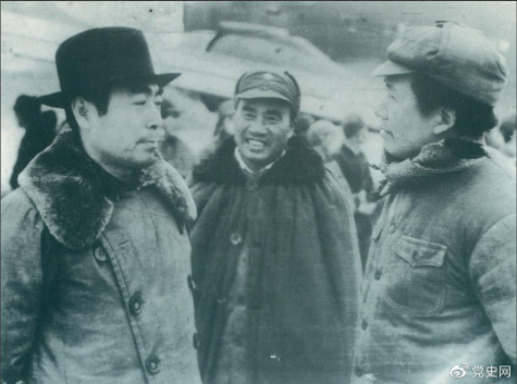 1945年11月11日,毛泽东、朱德赴延安机场迎接从重庆回来的周恩来。