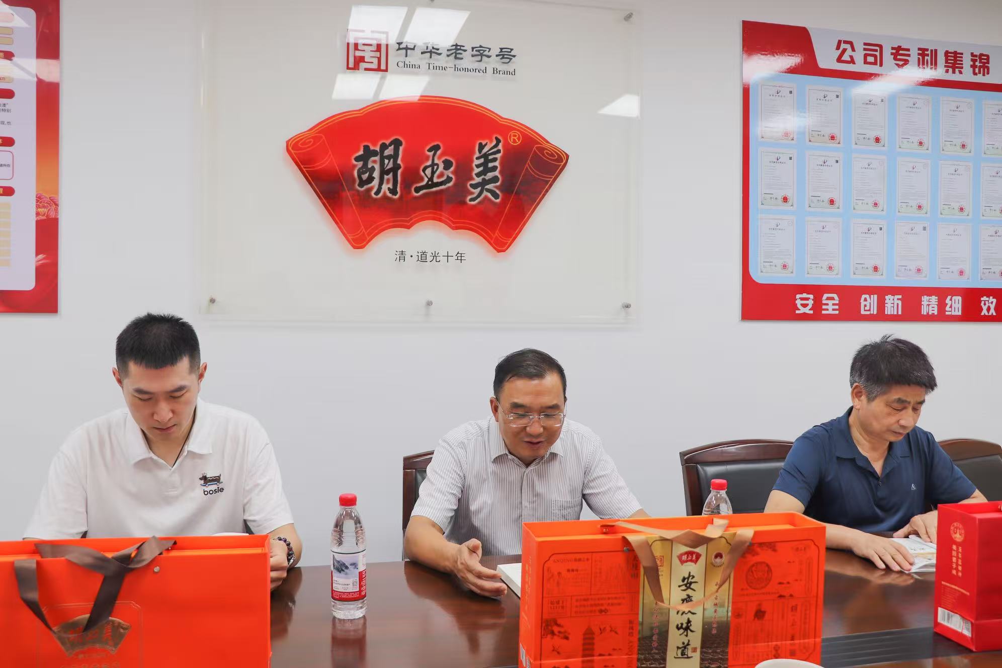 胡忠新对胡玉美取得的变化、发展和成绩给予了高度评价。他指出,胡玉美是安庆的一张“金字招牌”,希望胡玉美在传承非遗技艺、延续传统本色的同时,坚定不移地走“守正创新”之路,推动产品研发与技术工艺创新,不断提升产品品质与安全标准,切实守护好广大人民群众舌尖上的安全与美味,实现经济效益与社会效益的双赢。