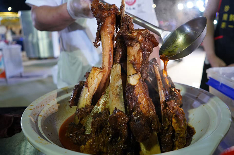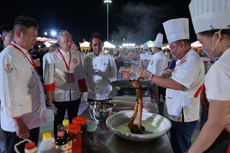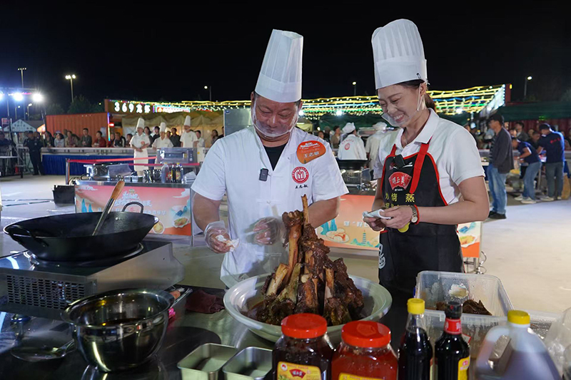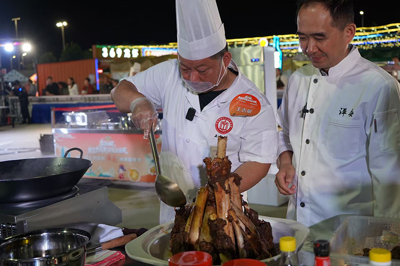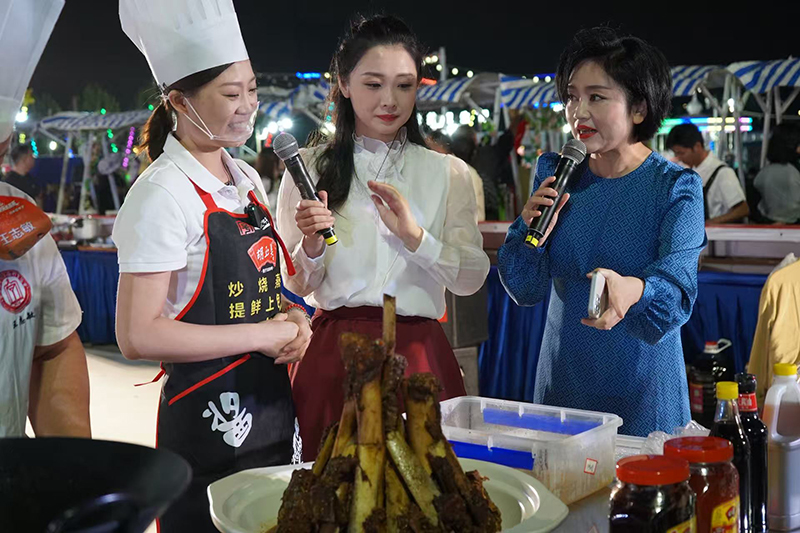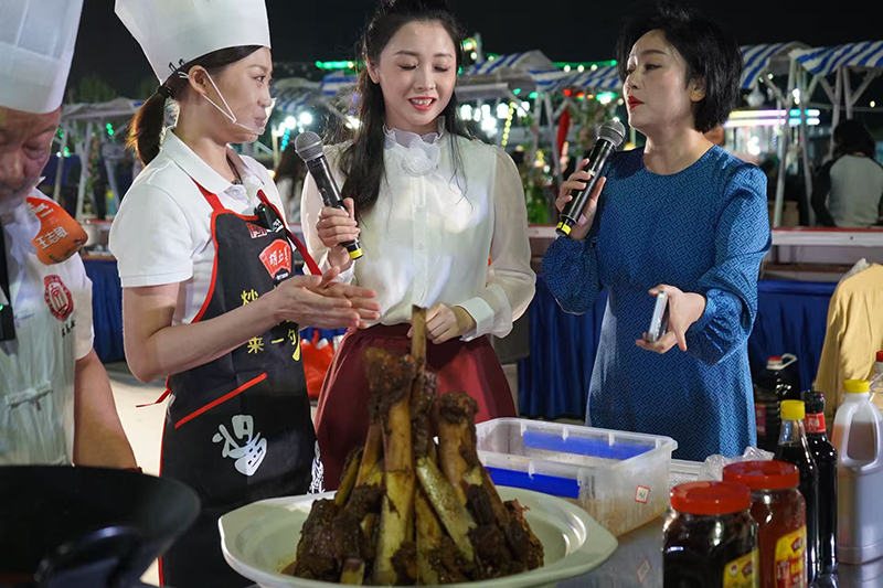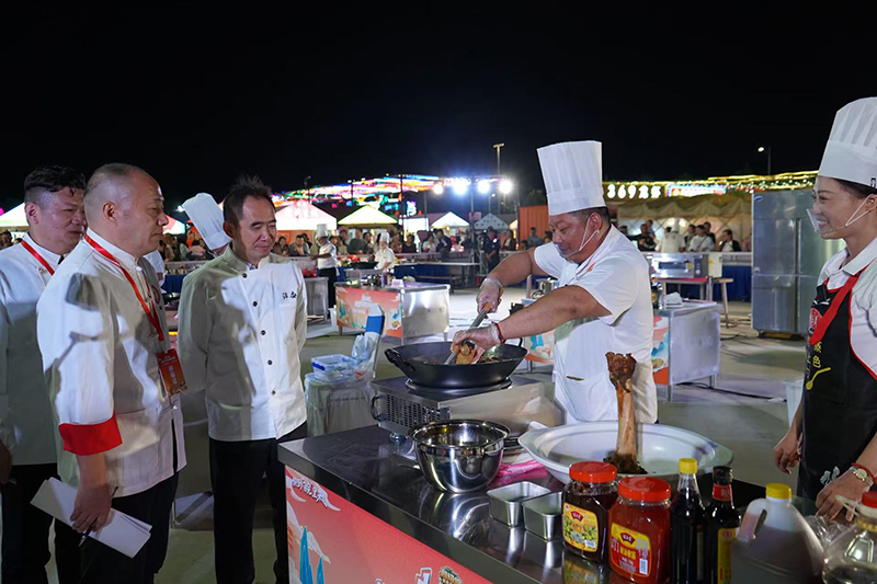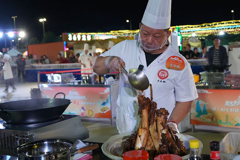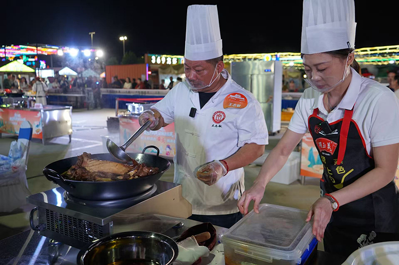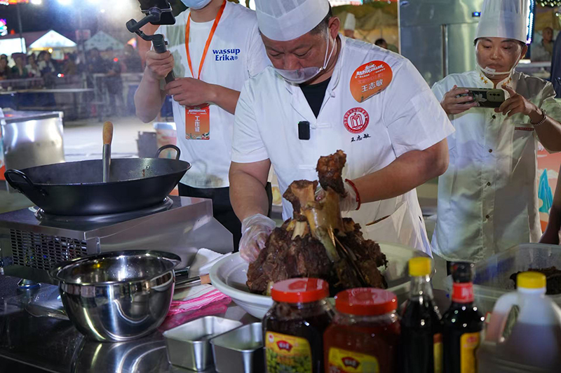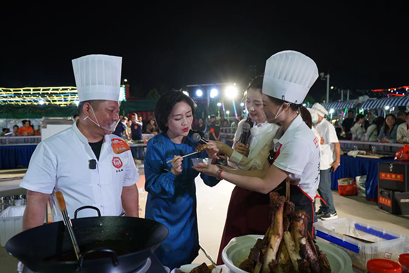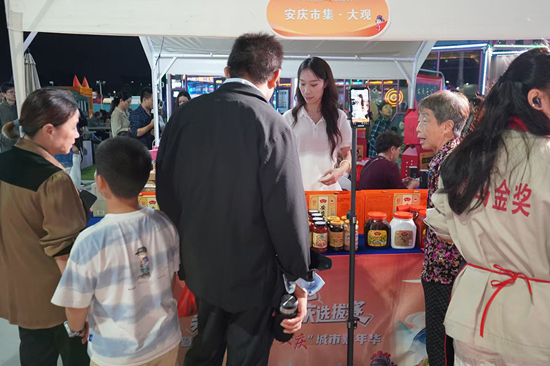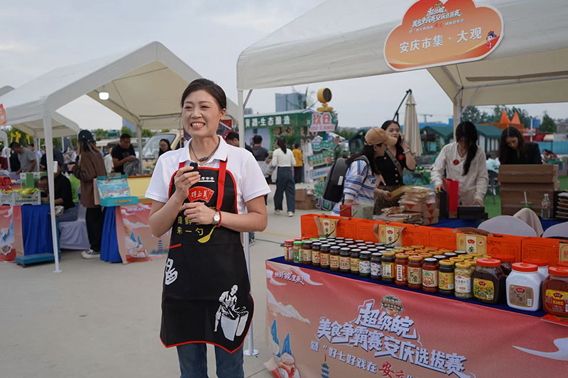 9月21日晚,超级皖美食争霸赛安庆选拔赛暨“好七好戏在安庆”城市嘉年华活动在滨江夜市拉开帷幕。胡玉美蚕豆辣酱及创意菜品“酱香牛大骨”亮相现场。