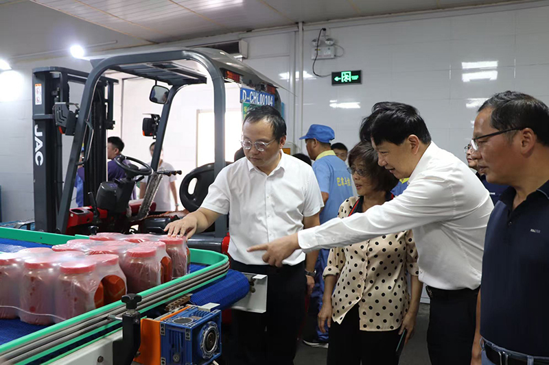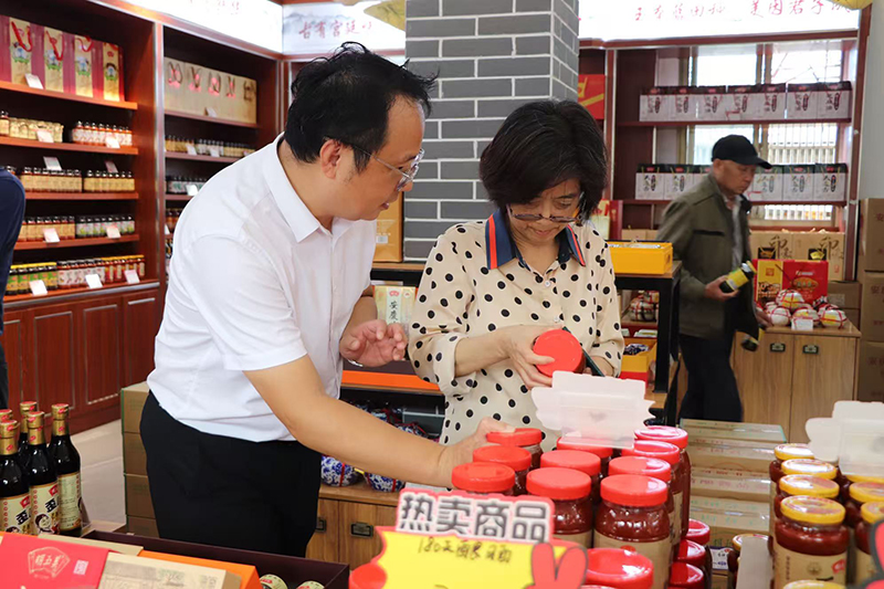 调研组先后参观了胡玉美辣油椒酱生产车间、天然酿晒场及胡玉美红楼店。参观期间,昝幼龙详细汇报了企业产品生产流程、质量管控措施及市场经营情况,并特别提到,胡玉美始终将食品质量安全视为企业生命,在原料采购、产品生产、成品管控各个环节严格遵守国家标准,尤其对于食品添加剂的使用,制定了严于国家标准的企业专项标准,添加量远低于国家标准限量,切实保证产品质量安全。