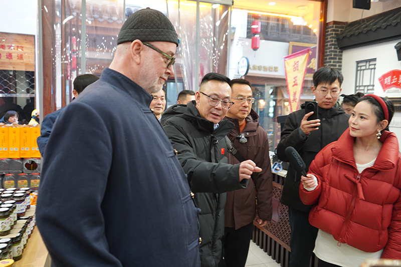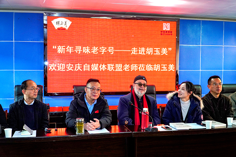 1月3日,安庆自媒体联盟理事长汪让之率安庆自媒体联盟30多位达人及来自德国的国际友人到访中华老字号胡玉美,开展“新年寻味老字号——走进胡玉美”主题活动。安庆市委网信办有关领导莅临现场指导,公司董事长颜志勇、副总经理昝幼龙给予了热情接待。