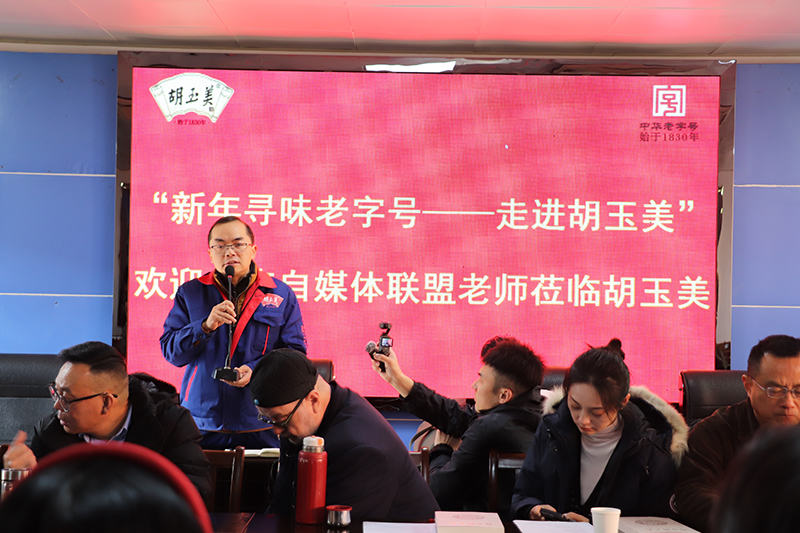 座谈会上,颜志勇对自媒体联盟一行的到来表示热烈欢迎,并详细介绍了胡玉美的发展历史、质量管控、品牌宣传等情况。颜志勇表示,胡玉美始终将食品质量安全与历史文化视为企业发展的根基,希望借助本次活动的机会,通过自媒体老师们的平台,进一步扩大胡玉美的知名度与美誉度,提升社会对胡玉美品牌的认同感。昝幼龙向自媒体联盟一行介绍了胡玉美的产品特点、技术研发等情况。