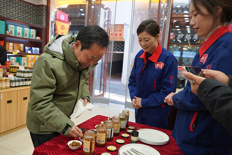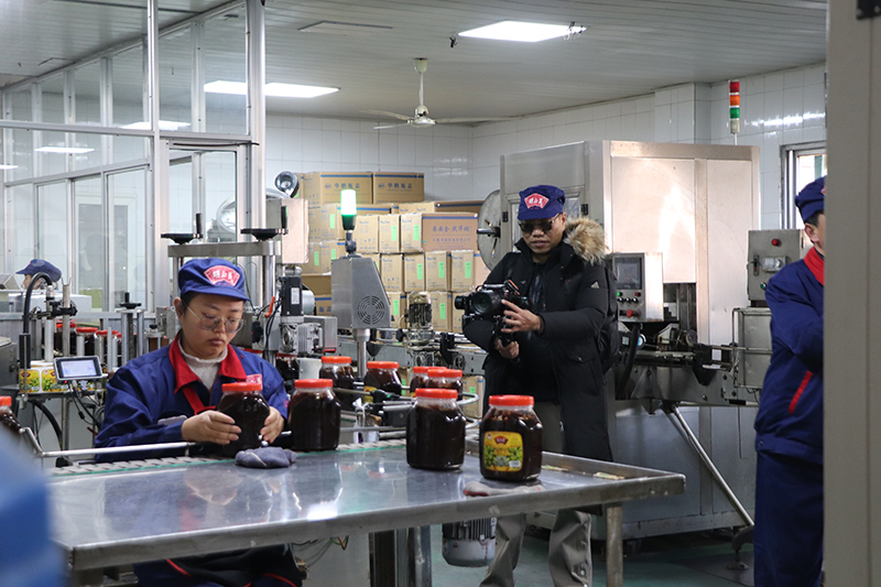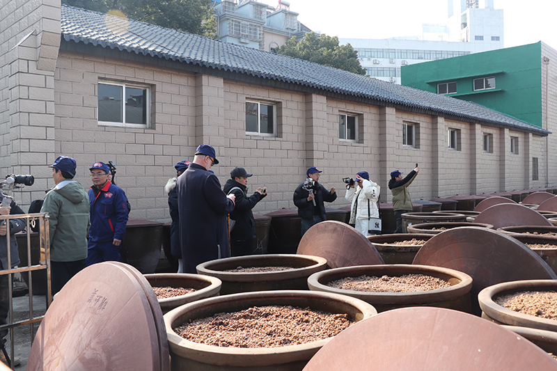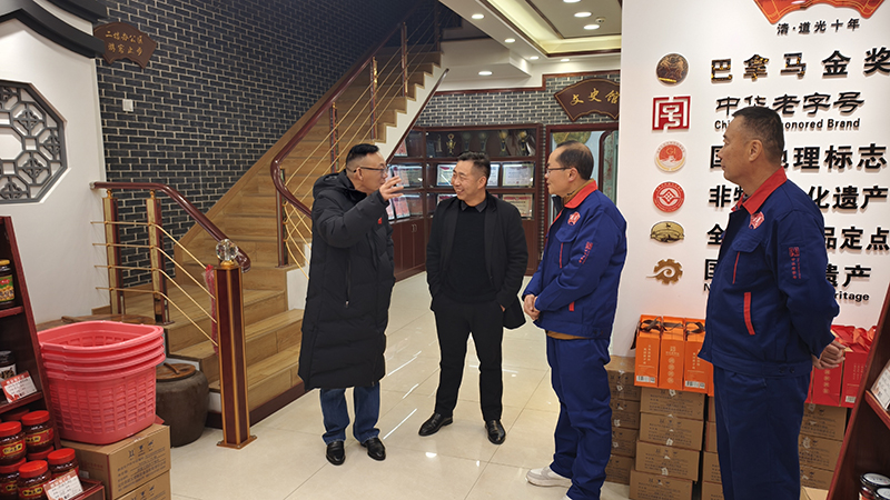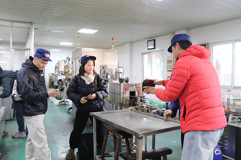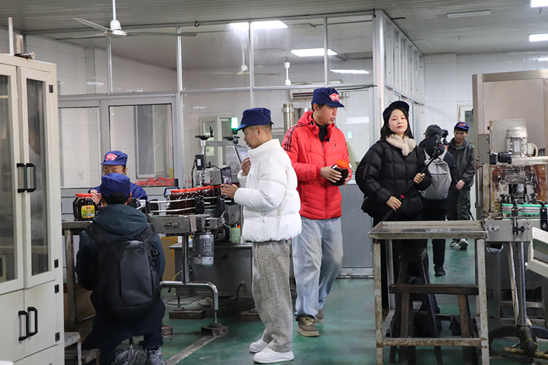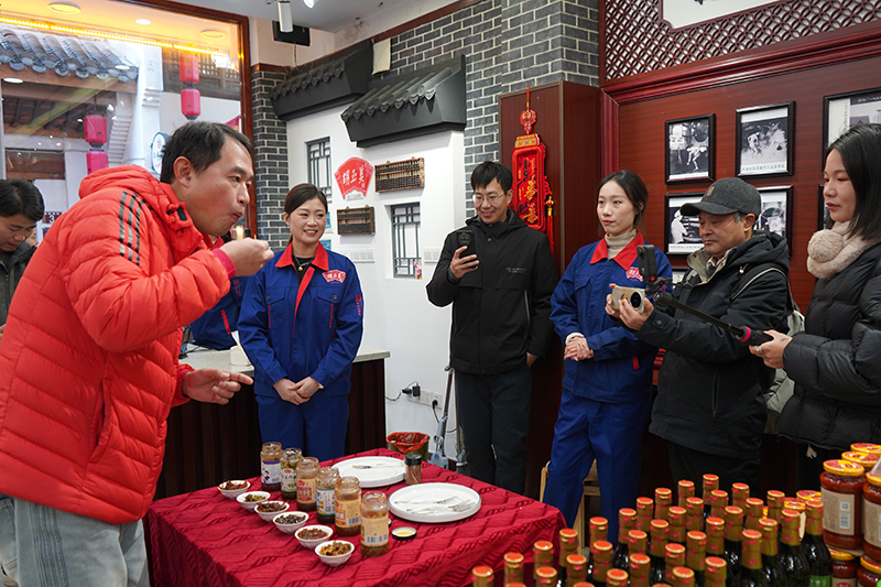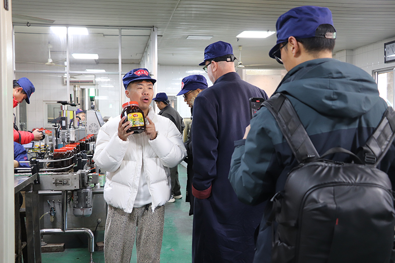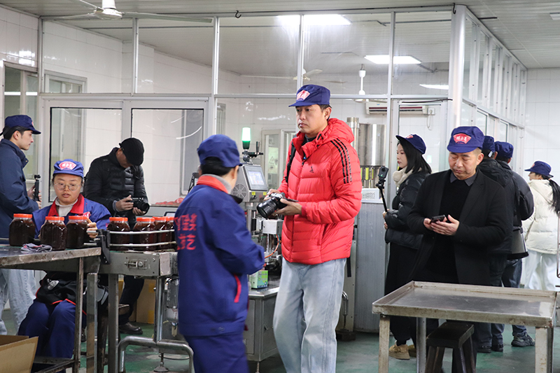 自媒体联盟一行先后参观了辣油椒酱生产车间、天然酿晒场、复合调味酱生产车间、公司匠心传承照片墙和胡玉美四牌楼店,深入了解胡玉美非遗酿造技艺,挖掘老字号背后的匠心故事和文化内涵,推动传统技艺与现代传播深度融合。