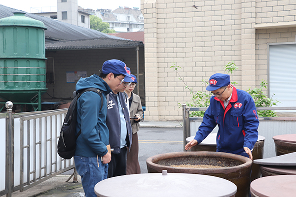 交流中,昝幼龙向肖兴鹏分享了胡玉美的产品特点、蚕豆酱技术工艺及生产流程,双方就微生物、益生菌等在酿造生产过程中的运用进行了深入交流,并展望未来深化校企合作进一步拓展新技术在酿造食品行业的应用。 会后,肖兴鹏一行参观了公司天然酿晒场。
